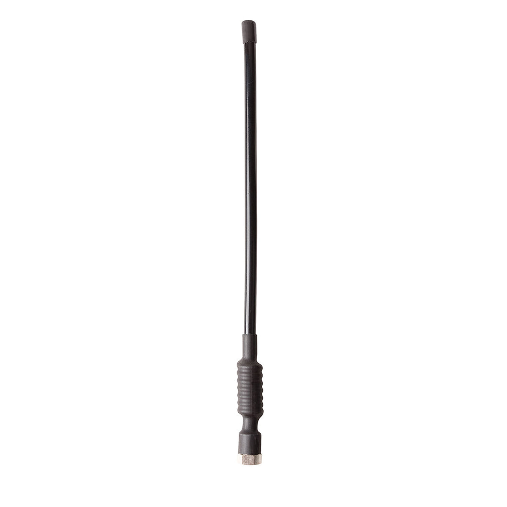 1/2 wave vertical ground independent antenna with a highly flexible whip and convenient compact size for versatile mounting. Length including spring and base: 35cm