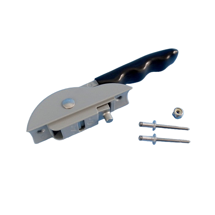 The handle is riveted onto the awning arm; it is used to extend the hardware and lock into position when setting up the awning.