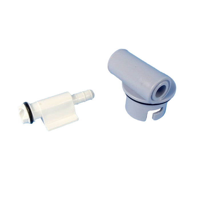 The ventilation connection actuator, a removable white component located on the toilet base, is included with new cassettes. You may optionally transfer the ventilation outlet from an old tank by rotating it 45 degrees, though this won’t enhance the seal.