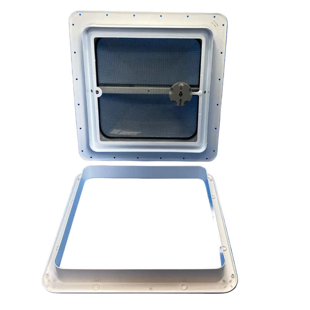 Jensen caravan wind up style ventilation hatch with translucent lid and flyscreen.